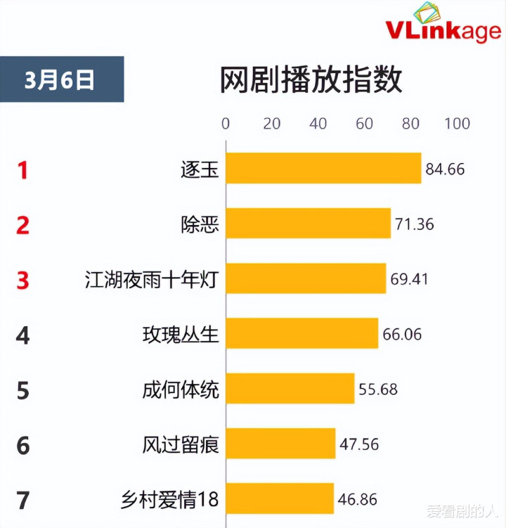 极速飞艇app 网剧播放指数: 《逐玉》登顶, 《江湖夜雨十年灯》位列第三!